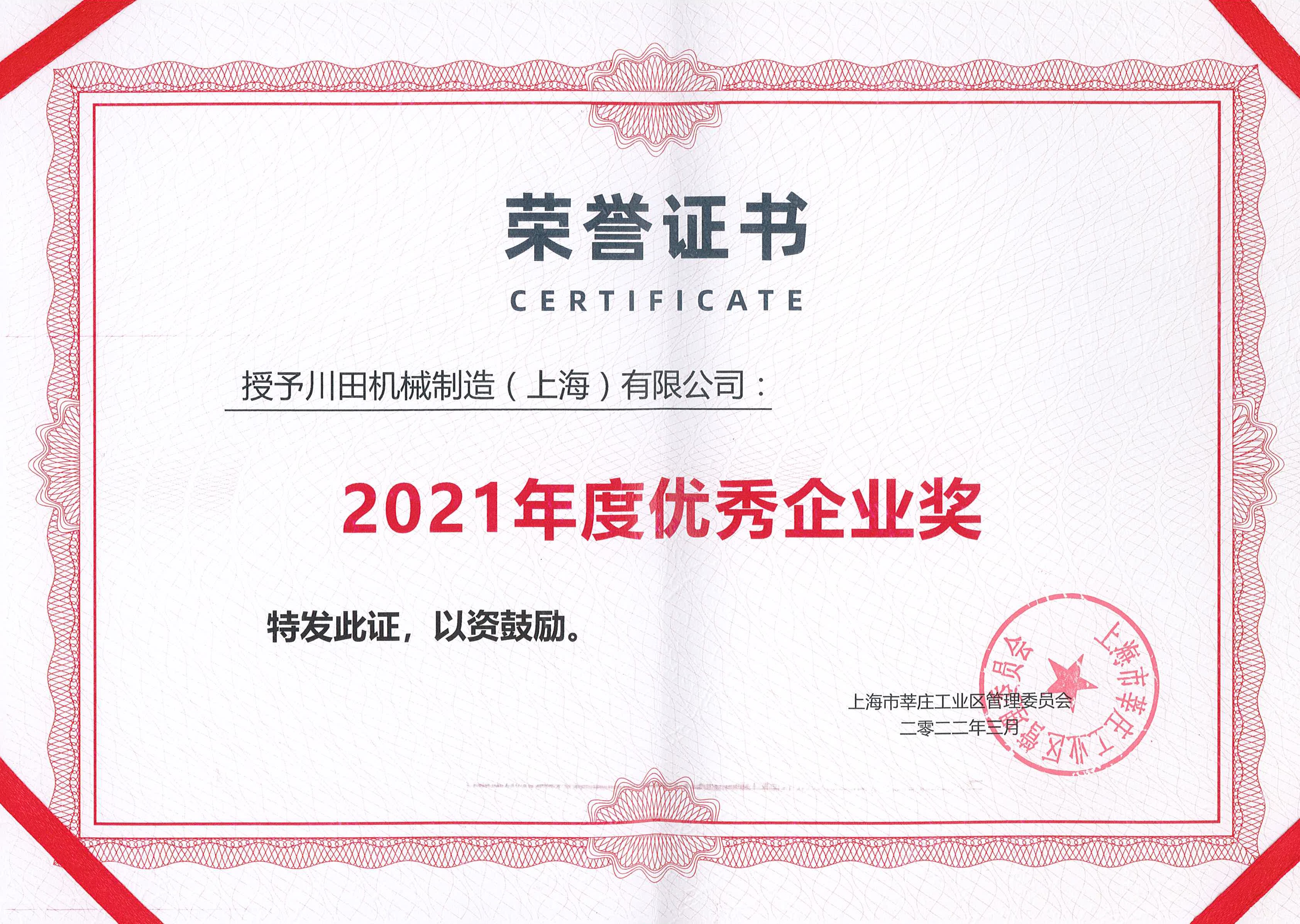 2021 莘庄工业区 优秀企业奖证书