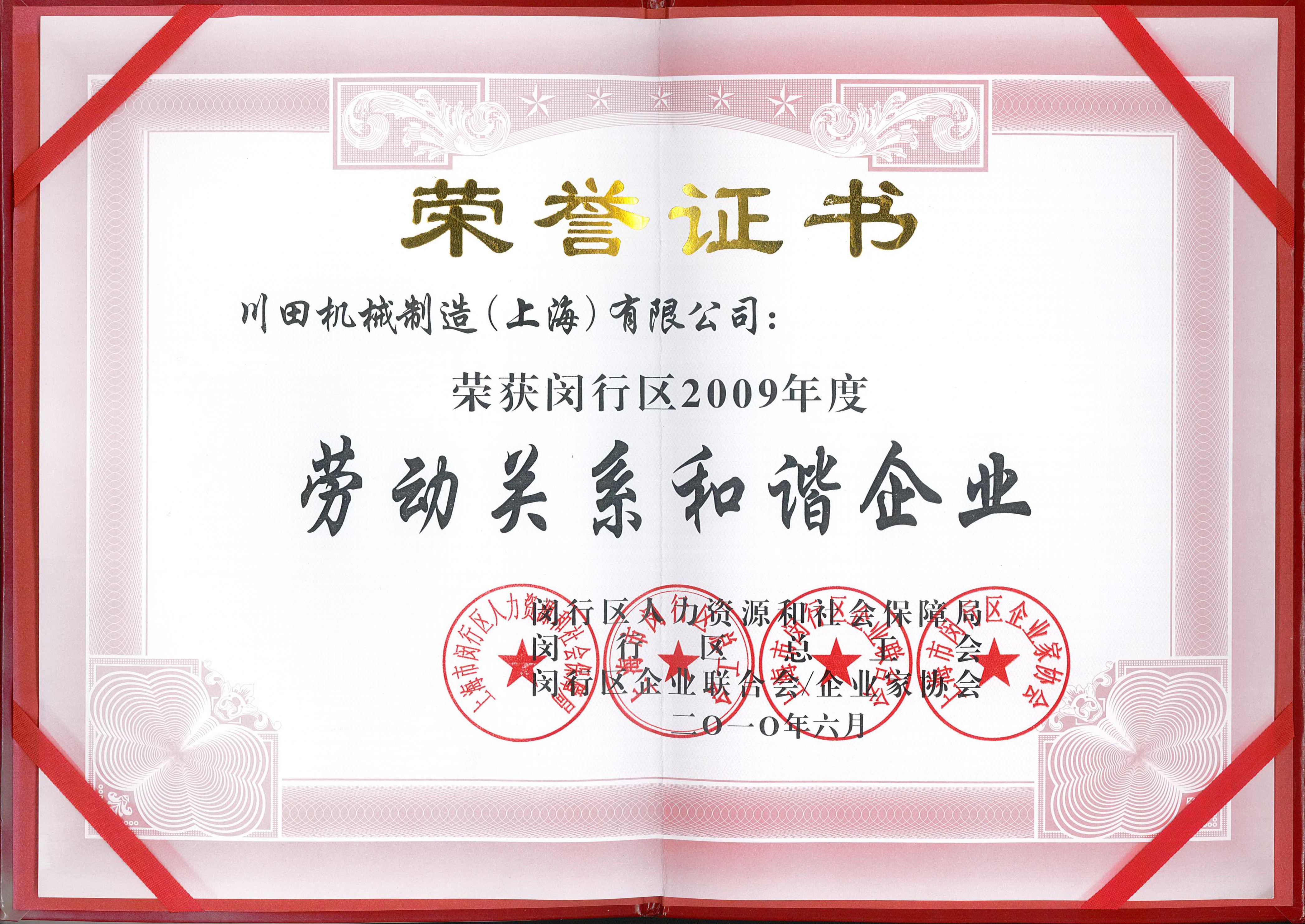 2009 闵行区劳动关系和谐企业-2