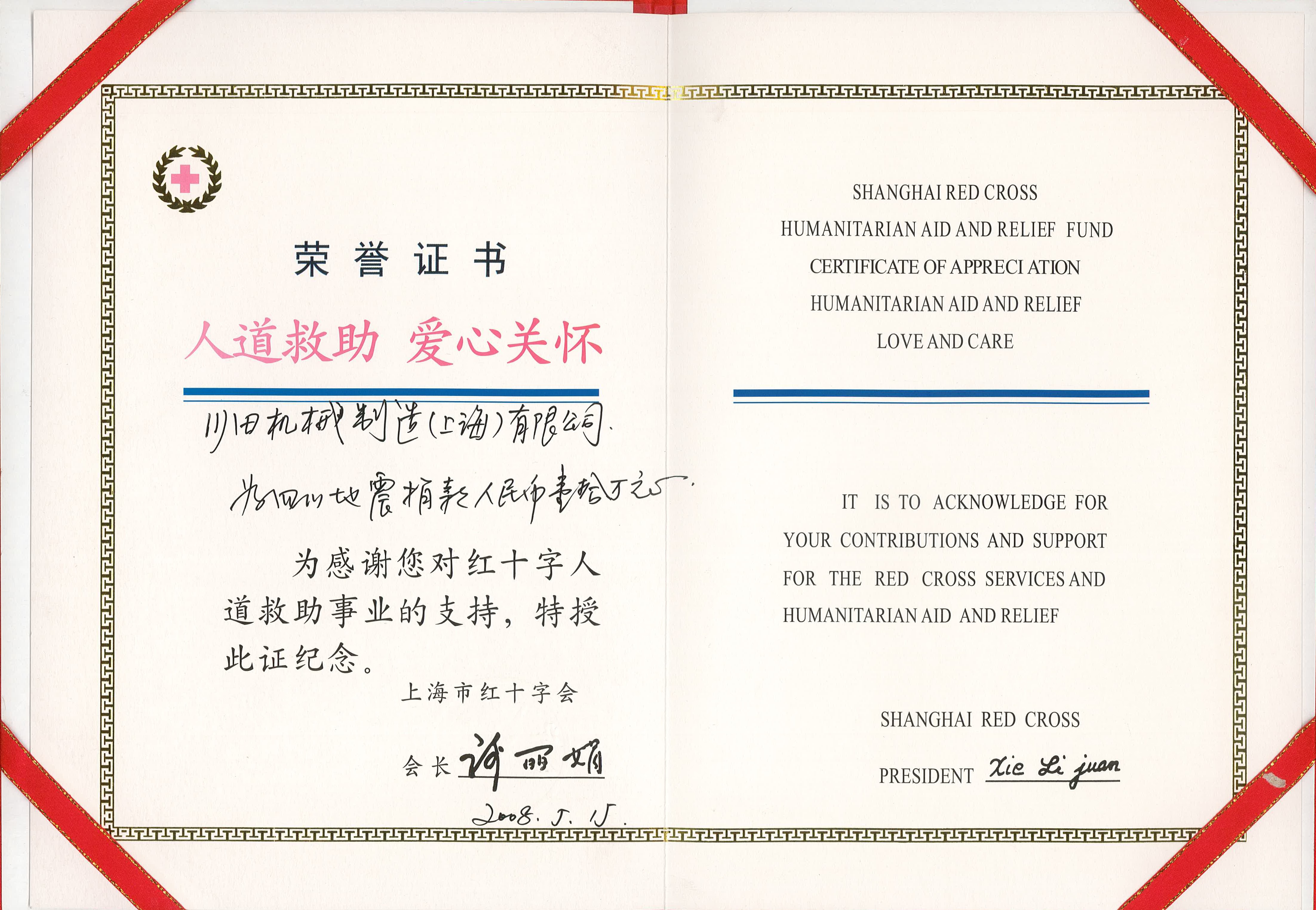 2008 上海红十字会川田机械上海