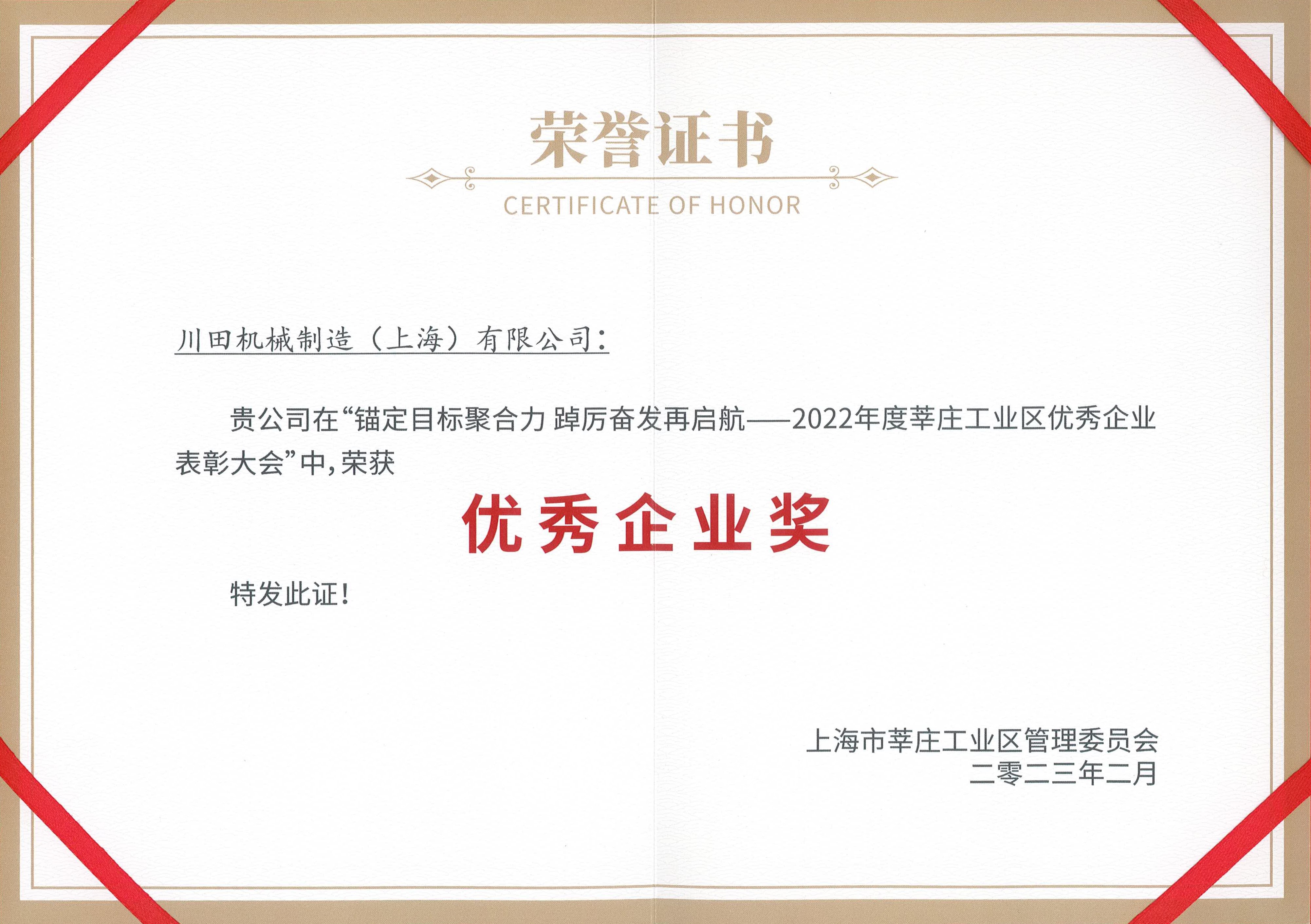 2022年度莘庄工業区優秀企業賞