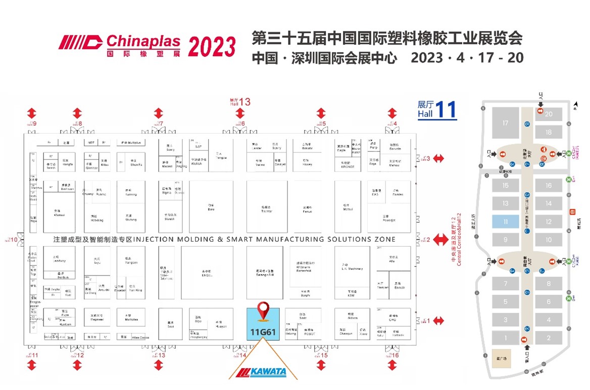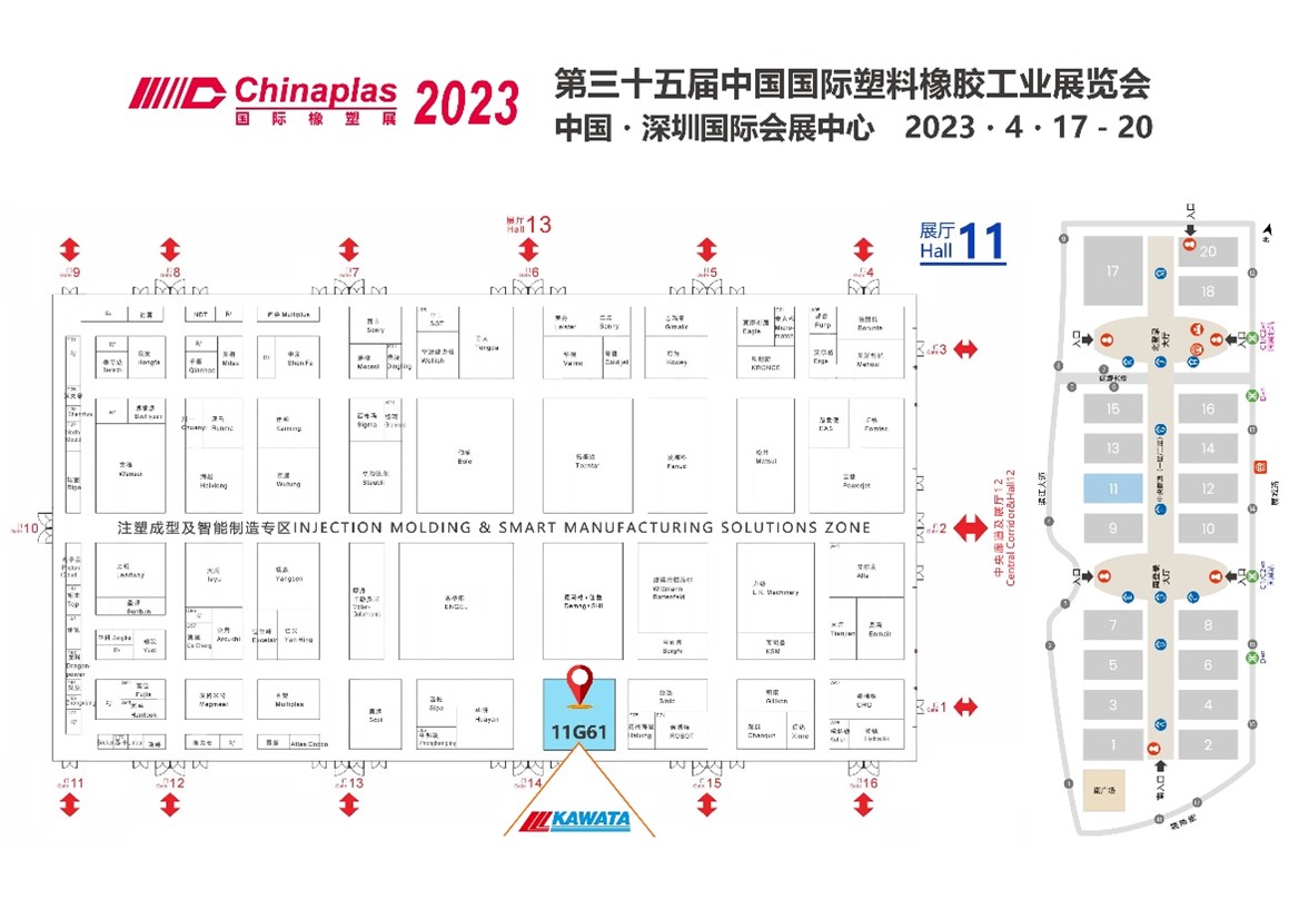 川田機械製造(上海)有限公司(「川田上海」と略称する)はChinaplas 2023ブース番号11 G 61にご来場をお待ちします。