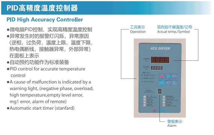 方便操作的机能满载,适合对应工厂的干燥机。